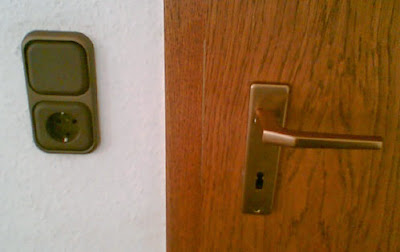 In den 80ern entdeckt, befindet sich die abgerundete Schaltersteckdosekombination in braun-grün-metallic heute auf dem Rückzug aus deutschen Wohnräumen. Hier fotographiert in ihrer natürlichen Umgebung, der Rauhfasertapete, zeigt sich aber, dass es noch Hoffnung gibt.